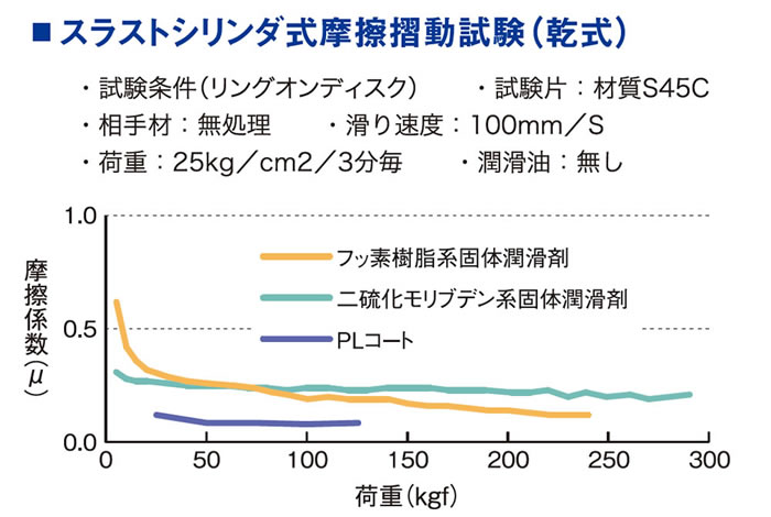 塗膜は特に軽荷重域での摩擦摺動特性に優れた性能を有しております。また撥水性、エッジカバー性に