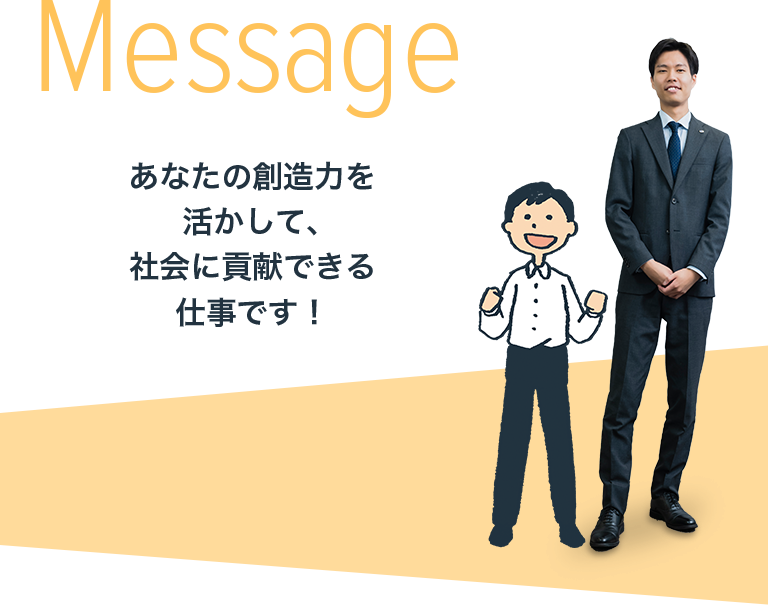 今は営業として、主に建築業界のお客様を担当しています。お客様のニーズに合わせて、最適な表面処理を提案するのが私の仕事です。この仕事の面白いところは、自分自身の提案が、形になることです。例えば、お客様から新製品への表面処理の相談を受けた際に、自分なりに考え抜いた表面処理技術の提案が採用されたときは本当に嬉しいです。また、自分が興味のあるモノづくりの業界に飛び込み、提案営業するのも面白いですよ。この製品に表面処理加工が出来たのだから、別の分野にも応用できるかもしれない。そんな発想で声をかけた企業から受注をもらったときは、本当にやりがいを感じます。表面処理加工にはまだまだ未開拓の分野があり、伸び代があるんだなと思います。